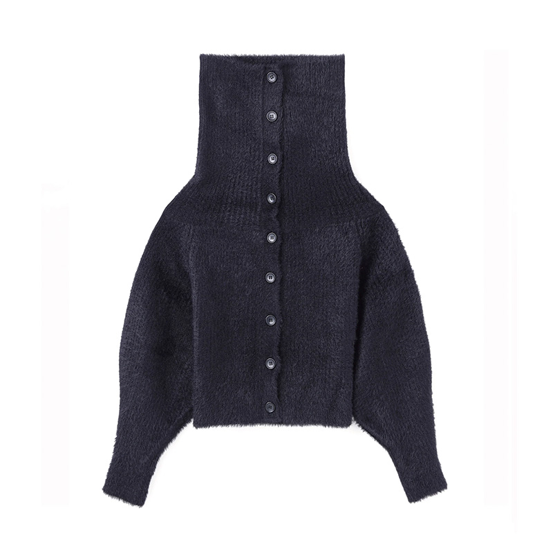JOHN LAWRENCE SULLIVAN / JLS RIBED SHAGGY OVER HI-NECK KNIT CARDIGAN