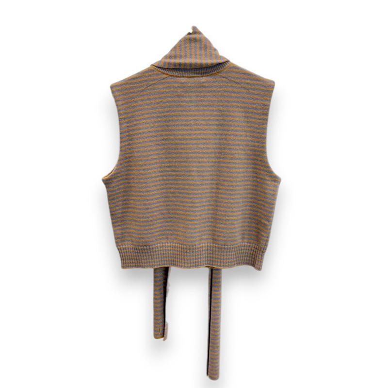 TAN / TAN CASHMERE STRIPED KNIT VEST WITH LONG SCARF