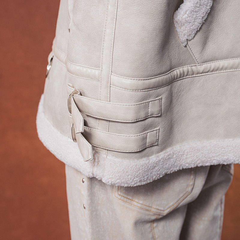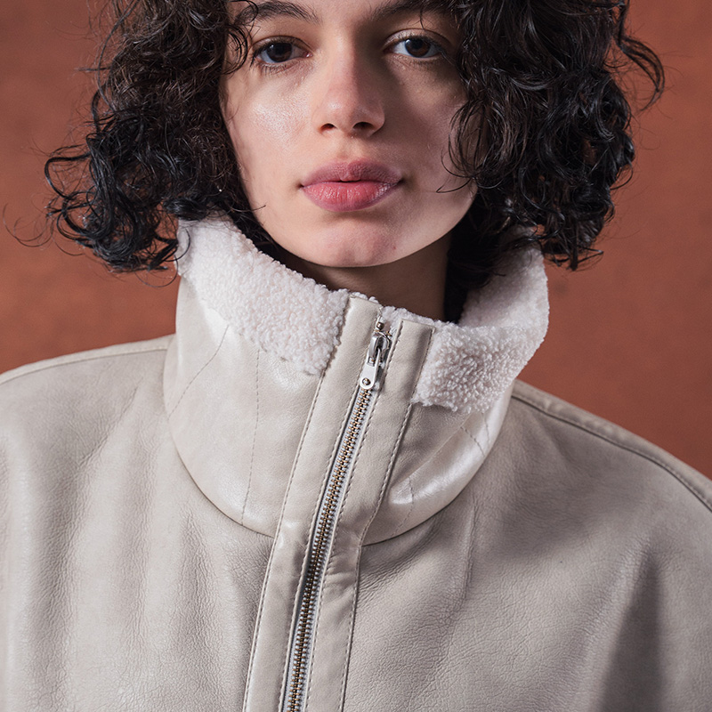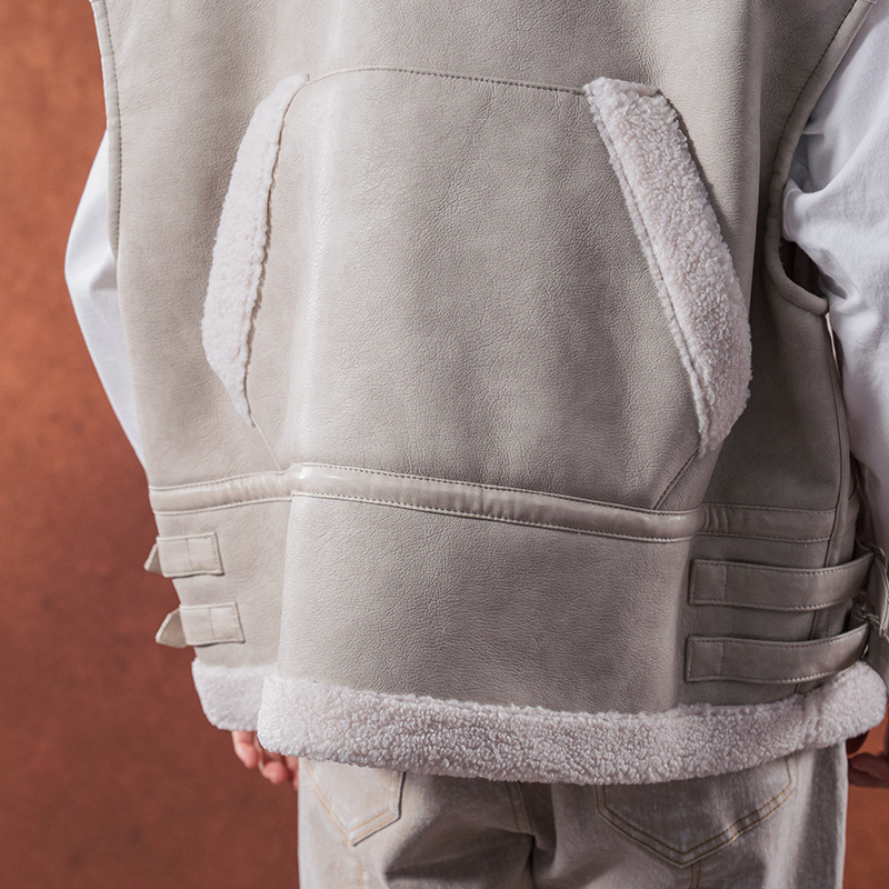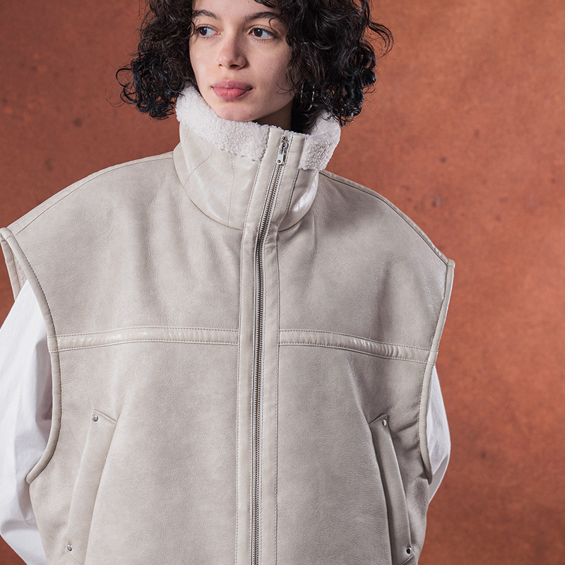 TAUPE / TPE E.LEATHER MOUTON STAND VEST