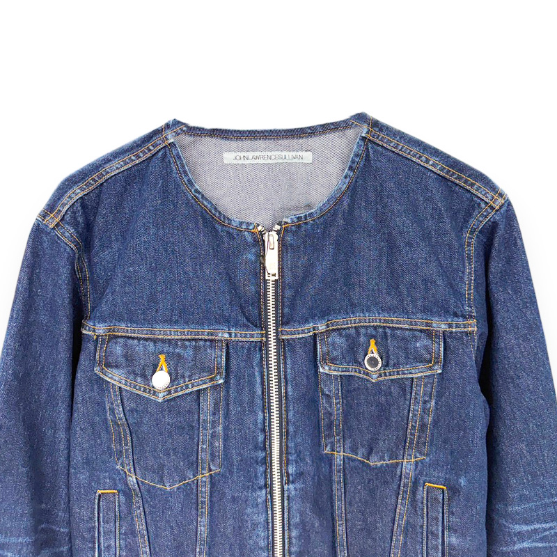 JOHN LAWRENCE SULLIVAN / WASHED DENIM COLLARLESS JACKET